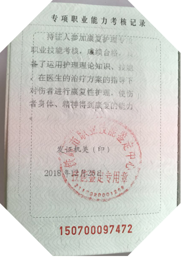2、康复护理:运用护理理论知识、技能,在医生的治疗方案的指导下对伤者进行康复性护理,使伤者身体、精神得到康复的能力。
