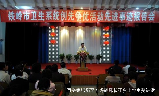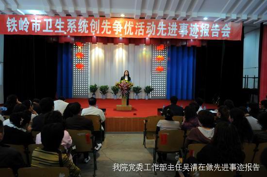 9月20日下午1:30分,铁岭市卫生系统争先创优活动先进事迹报告会在市中心医院礼堂召开,我院近120名党员参加了报告会。市委组织部李长涛副部长、市卫生局党委书记、局长白光达、市卫生局党委副书记刘文春、市卫生局政治处主任喻洪德等相关领导出席了会议。会议由白光达局长主持,我院党委工作部主任吴清在会上了做了题为《铭志、铸业、教书育人,永葆党员本色》的先进事迹报告。