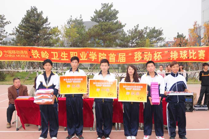10月13日,“铁岭卫生职业学院首届‘移动杯’高职排球比赛”在学生代表队与老师代表队的友谊赛中圆满结束。闭幕式上,副院长刘岩峰同志、党委副书记杨丽清同志为获奖代表队颁奖,副院长刘岩峰做了总结讲话,他代表学院向全体参赛队表示祝贺并向裁判员和工作人员以及为本次比赛提供赞助的铁岭县移动公司表示感谢。