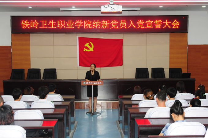 入党宣誓仪式由党委工作部吴清主持。宣誓仪式在《国际歌》声中拉开序幕,党委工作部组织科科长刘双宣读了新发展的预备党员名单;医学检验技术系党支部书记徐宁带领宣誓;护理系11高职护理八班金子昀同学和宣传科科长马腾云先后代表新、老党员相继发言。最后,院党委副书记杨丽清做了重要讲话,她代表院党委向全体新党员提出了明确的要求,希望全体党员不要辜负党委的期望,发扬党的优良传统,牢记全心全意为人民服务的宗旨,在各自的学习和工作岗位上充分发挥党员的先锋模范作用,无愧于共产党员的光荣称号。