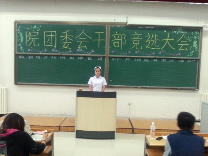 各位候选人通过演讲的方式向老师和同学们介绍了自己的特长、工作经验、工作态度及工作规划,他们精彩的演讲博得了大家的阵阵掌声,最终选出了包括院团总支、组织部、宣传部、文体部、社团部、礼仪部、广播站、文秘部共八个部门的十二位精英来担当重任。