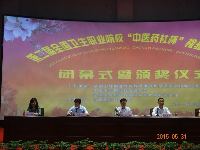 2015年5月29日至31日,在全国卫生职业教育教学指导委员会医学检验分委会、全国卫生职业教育研究会、全国卫生职业教育检验专业研究会共同主办的第二届全国卫生职业院校 “中医药社杯”检验技能竞赛(高职组)中,我院检验系孙晨、盖迪、杨明秀等3名同学参赛荣获团体二等奖。其中,孙晨同学获个人综合二等奖、盖迪同学获血糖检测单项二等奖、杨明秀和盖迪两名同学分获个人综合三等奖。 本次比赛在河南信阳职业技术学院隆重举行,全国25个省61所职业院校组队参赛,其中高职院校43队、中职院校24队,共有202名选手参加本次竞赛。竞赛分为形态学、革兰染色、白细胞计数、血糖测定等四个项目。在学院的大力支持和专业教师的精心指导下,同学们以其精湛的专业技能和良好的精神风貌,获得了评委专家的一致好评。