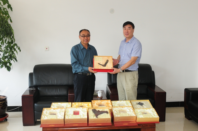 2015年9月17日,辽宁鹿源参茸饮片有限公司总经理马秀等一行4人到我院就进一步加强校企合作事宜进行座谈。我院党委书记左力、院长王峰、副院长宋大卫以及药学系主任赵立彦参加座谈。座谈中,校企双方就有关科研方面的战略合作达成共识,由该公司牵头、我院参与的辽宁省(铁岭)鹿产品深加工产业技术创新战略联盟试点获得辽宁省科技厅批准。此外,该公司计划与我院药学系共同进行“灵芝破壁孢子粉颗粒”、“鹿骨粉冲剂”等新产品的研究开发。会后,马秀总经理还向我院赠送了冬虫夏草、野生灵芝、二杠鹿茸、鹿茸片、蛤蟆油、林下山参、龙凤参、鹿鞭、鹿角等42个品种、价值一万多元的贵重中药标本。