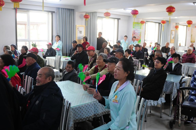 在敬老院里,师生志愿者陪老人聊天,为老人们表演了自编、自导的小节目,优美的歌声、动人的旋律和欢快的舞蹈赢得了老人阵阵掌声,互动的环节更是温情无限,为平日宁静的敬老院增添了许多的欢声笑语。康复系两位老师向老人们做了关于“中老年人头面部保健按摩常用穴位”的讲座,并带领青年志愿者们为老人进行诊脉、按摩、测量血压,使老人们受益良多。
