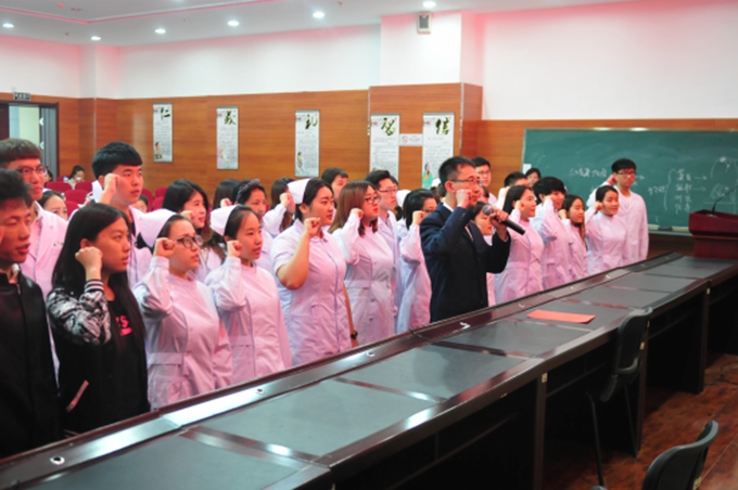 康复治疗技术系党支部书孟繁明带领新党员宣誓