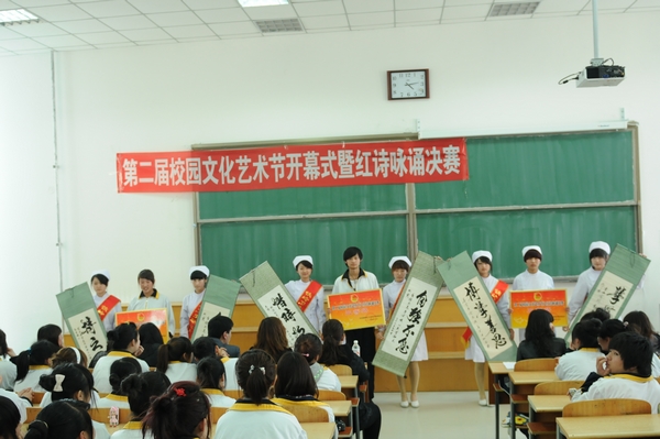 本次的红诗咏诵比赛报名方式为集体报名,所有的班级均做到了全员参加,这为比赛的准备环节增添了很大的难度,但各参赛班级在老师的帮助指导下均做到了积极准备、全力以赴。历经预赛、复赛,共有6个班级进入了最后的决赛环节。比赛中同学们上下场有序有礼、朗诵声情并茂,充分体现了我院学生蓬勃向上的爱国激情。经过激烈的角逐,最终10级高职护理3班表现优异,获得了一等奖,10级高职护理6班、10级中专护理4班获得了二等奖,获得三等奖的班级包括10级普专检验药学班、10级中专英语加强班、10级中专护理8班,本次比赛成为了本届校园文化艺术节精彩的开篇之笔。
