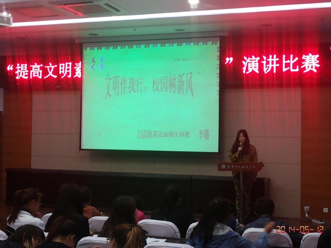 参赛选手通过演讲诠释了各自对文明素质的理解,并呼吁身边的同学们切实提高文明素质,一起努力,共创和谐美好的校园环境。最终,13高职涉外文科班的李璐同学在比赛中脱颖而出,获得了一等奖。