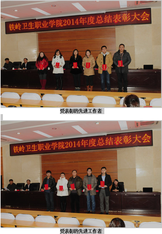 2015年1月20日上午,我院在图书馆第一报告厅召开2014年度总结表彰大会,院长王峰、党委副书记兼纪检书记杨丽清、副院长宋大卫、党占涛、刘涛、工会主席宋煜以及全院教职工400余人出席了本次大会,会议由行政处处长关晓林主持。