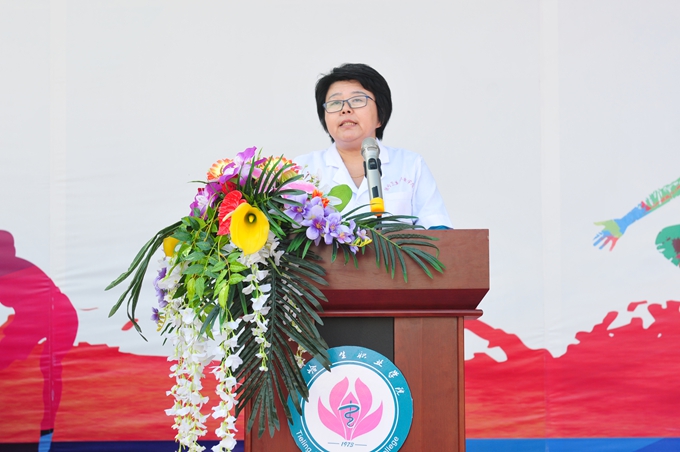 开学典礼由副院长宋煜主持,来自护理系的史海瑞同学代表2016级新生进行了发言,表达了新生踏实学习、磨砺自己的坚定决心;已在202医院就业的我院优秀毕业生代表杨健秋同学代表老生发言,向学弟学妹们送去了真诚的祝福并介绍了学习经验;康复系主任王丽华作为教师代表进行了发言,她代表全体教师道出了对学生的殷切嘱托;最后,院长王峰做了精彩的致辞,他的讲话数据详实、事例生动、引经据典、言辞恳切,博得了同学们的阵阵掌声,也将开学典礼的气氛推向了高潮。本次开学典礼在全体合唱校歌《我们铭记神圣诺言》的歌声中结束。