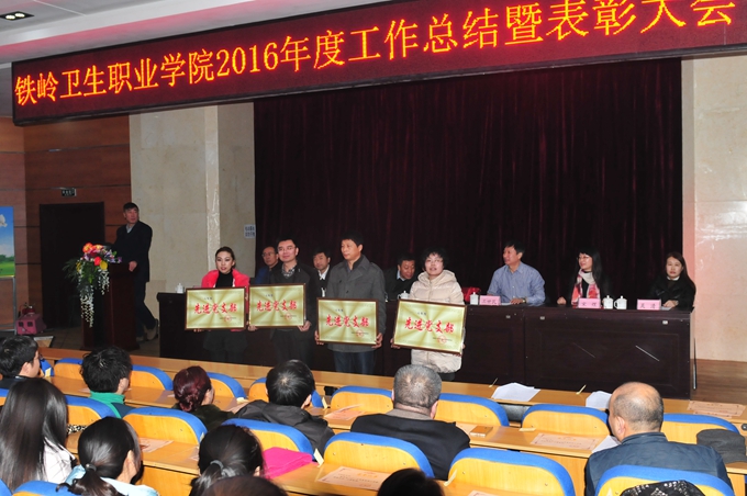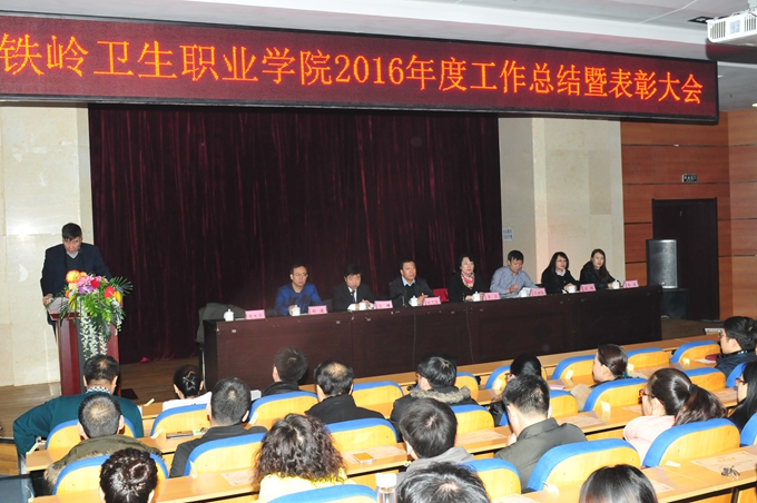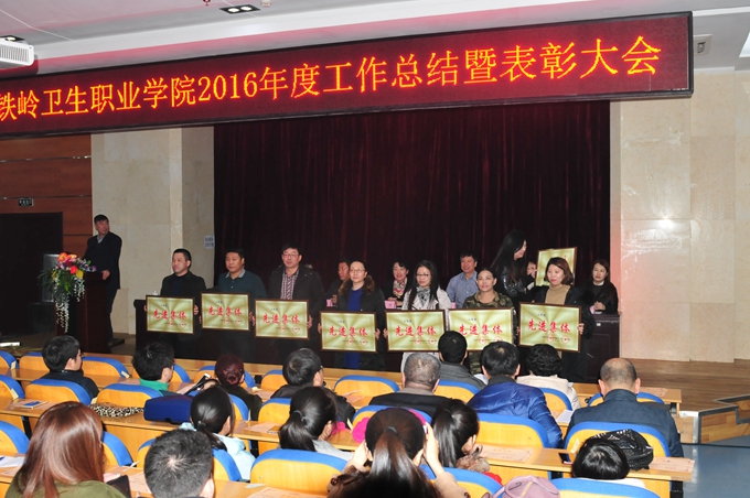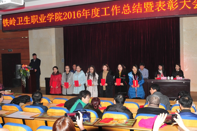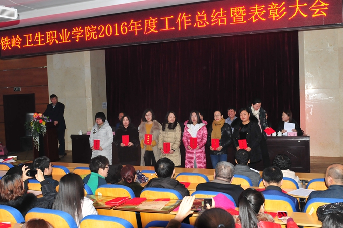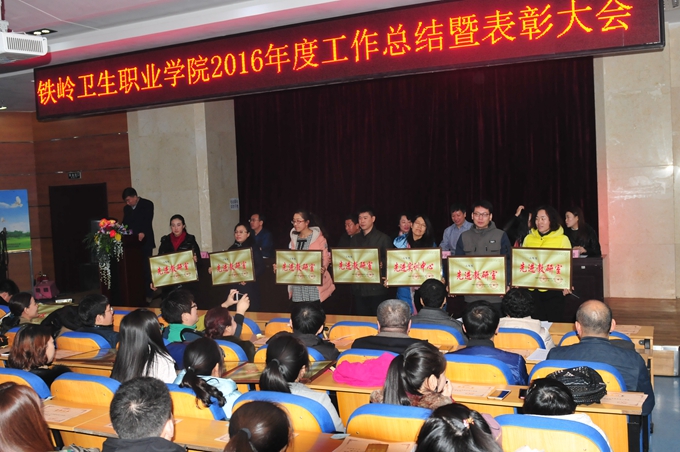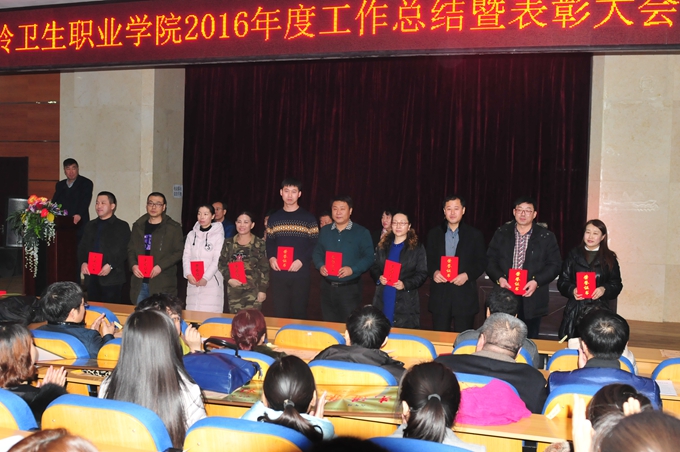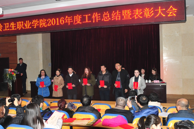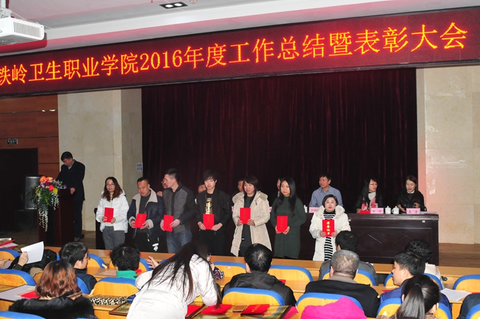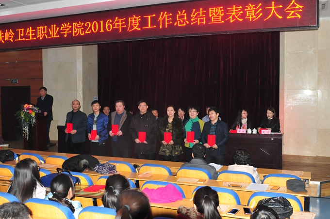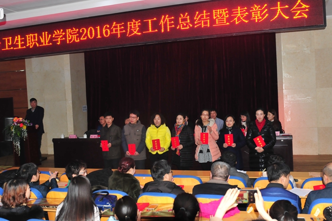 会上,院长王峰做了2016年度工作报告,对学院一年来的各项工作进行总结并对2017年工作进行部署;院党委书记左力做了总结讲话,希望大家再接再厉做好2017年工作,并对全院职送上温馨的祝福;市卫计委党委副书记刘文春作重要讲话,对我院去年工作成绩给予肯定,并提出希望;副院长王世民宣布了“关于表彰2016年度先进党支部、优秀党务工作者、优秀共产党员的决定”;副院长刘涛宣布了“关于表彰2016年先进集体和个人的决定”;副院长宋煜宣布了“关于表彰2016年参加各类技能竞赛获奖的集体和个人的决定”,随后,学院领导为获得2016年度先进党支部、先进集体、先进教研室和实训中心、优秀共产党员、党务工作者、先进工作者及各类技能竞赛获奖的集体和个人进行颁奖。