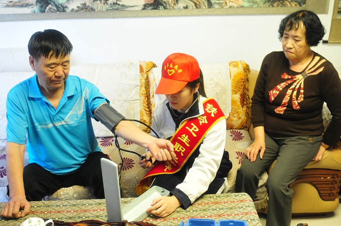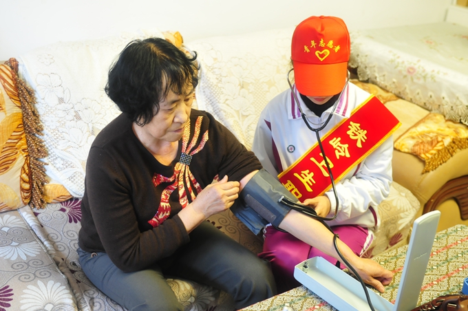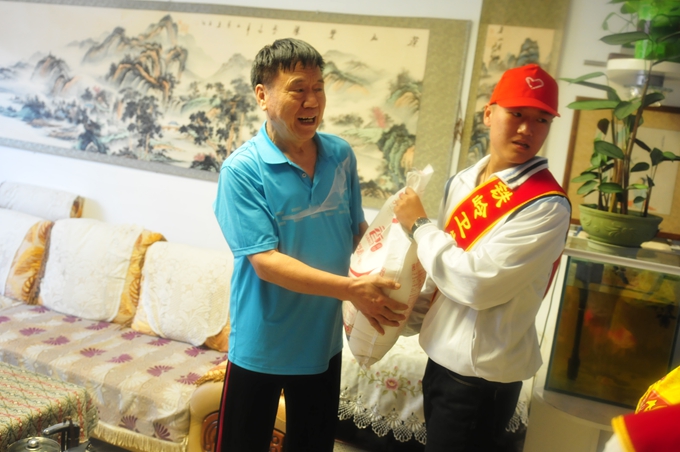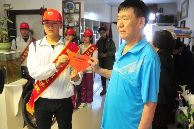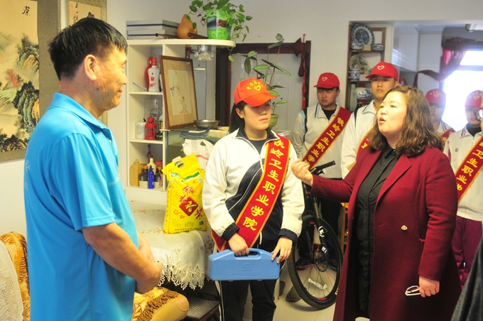 此后,一行人在社区书记的带领下,来到了钟山柳岸社区的付大爷家,付大爷子女常年不在身边,且身体不好,学院工会为付大爷家准备了米、面、油等生活用品,院青年志愿者服务队第一分队向付大爷家捐赠了一台血压计并与付大爷签下了长期服务的“爱心结对卡”。