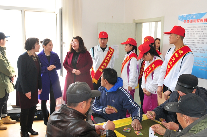 15日上午,院工会代表学院职工为社区活动室带来了麻将、象棋、军旗、扑克等供居民休闲娱乐所用的物品,这一爱心举动丰富了“爱心活动室”的基础建设,得到了社区居民的一致好评。