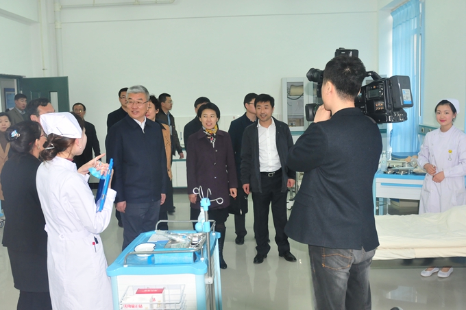 我院党委书记左力、院长王峰等领导陪同市长一行参观了学院护理实训中心、生命科学馆、护理院。在参观的过程中,王峰院长介绍了学院的发展建设情况,特别是在铁岭卫生职业学院护理院建设的重大意义,养老护理、医养结合长远发展等方面的新思路、新举措。