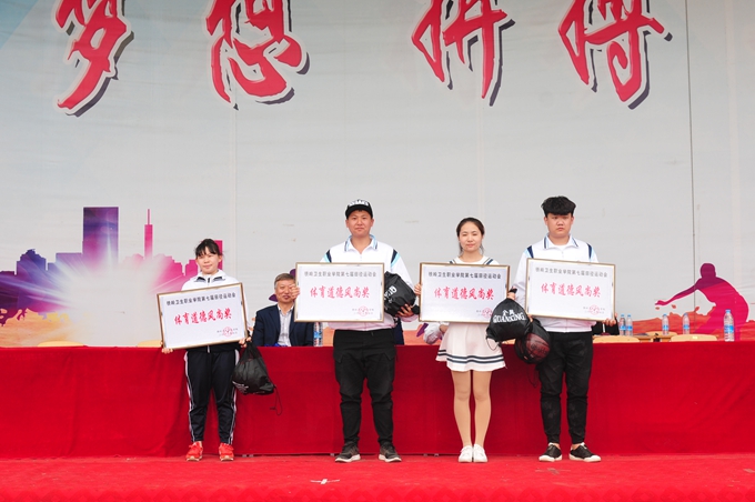 运动会闭幕式由行政处处长关晓林主持,总裁判长侯健宣布比赛成绩,运动会组委会委员、宣传组组长吴清宣布体育道德风尚奖评比结果,学院领导向获得团体总分、男子组、女子组前三名的代表队以及获得体育道德风尚奖的代表队颁发奖状和奖品。大会组委会总指挥副院长宋煜致闭幕词,她首先向所有为大会做出不懈努力的全体老师和同学们表示衷心的感谢,感谢全体运动员的积极参与,向取得佳绩的运动员、各系部表示祝贺,并希望全院师生在赛场上练就体育精神,赛场下努力工作,刻苦学习,亲近友善,和谐共赢,让每个美好的个体组成我们美丽的校园!