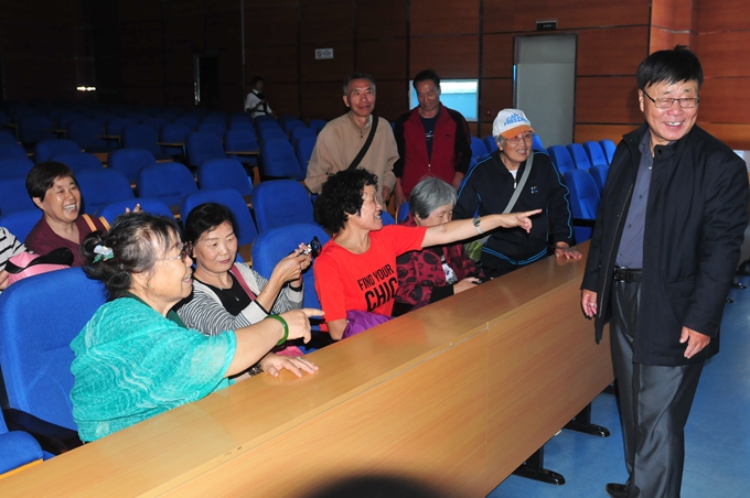 在学院领导的陪同下,老教师参观了学院现代化的场馆和教学设施,了解了近年来学院发生的可喜变化,看着美丽的新校园,老教师们纷纷感慨回忆自己年轻时校园教学条件的艰苦,对学院的变化感到由衷的自豪与欣慰,大家欢聚一堂、畅所欲言、缅怀过去、展望未来。