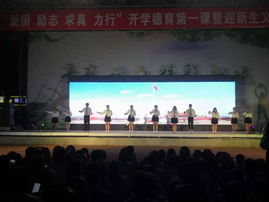 今年,开学德育第一课内容围绕习近平总书记向青年提出的“爱国、励志、求真、力行”四点希望,通过歌曲、舞蹈、小品、诗歌等形式展开,使同学们的潜移默化中受到陶冶。
