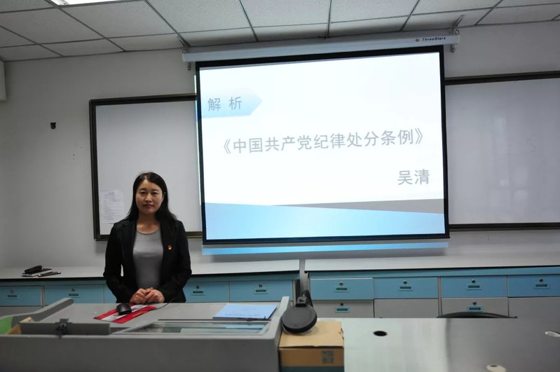 9月26日下午,党委委员、党政办主任吴清同志以解读修改后的《中国共产党纪律处分条例》为题,为口腔医学技术系党支部全体党员,上了一次意义深刻的党课。她总结了修改后的《中国共产党纪律处分条例》的八大亮点,为全体党员指出了有所为、有所不为的方向,与会人员在党课中受到了一次系统的党的纪律教育。