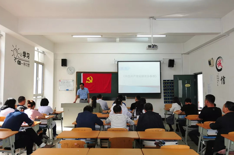 9月18日下午,副院长宋大卫为中专部党支部、第三党支部全体党员讲授了一堂专题党课——《中国共产党纪律处分条例》。宋大卫院长以学习负面清单,重在立规为开篇,并详细讲解了其中八大亮点。要牢固树立政治意识、大局意识、核心意识、看齐意识,担负起全面从严治党政治责任,抓好《条例》学习宣传和贯彻落实。