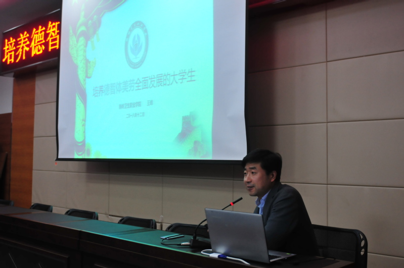 为认真学习贯彻全国教育大会精神”及“解放思想推动高质量发展”会议精神,切实把广大党员干部和师生的思想和行动统一到习近平总书记在大会上作出的战略部署上来,2018年12月21日下午1点,我院院长王峰在图书馆小报告厅开展“培养德智体美劳全面发展的大学生”宣讲对谈报告会,会议由涉外培训部党支部书记杨宏业主持,第八党支部、涉外培训部党支部、口腔医学技术系全体教师及部分学生代表参加此次讲座。