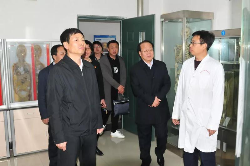 冯智部长一行先后到我院生命科学馆、护理实训中心、口腔实训中心及护理院等处现场调研。随后,在行政楼三楼会议听取了党委书记左力关于党建工作和思想政治工作情况的汇报。