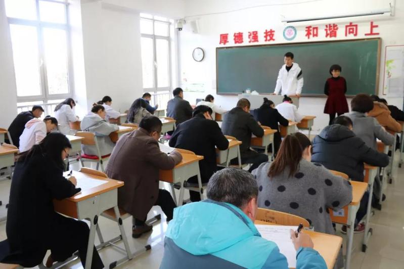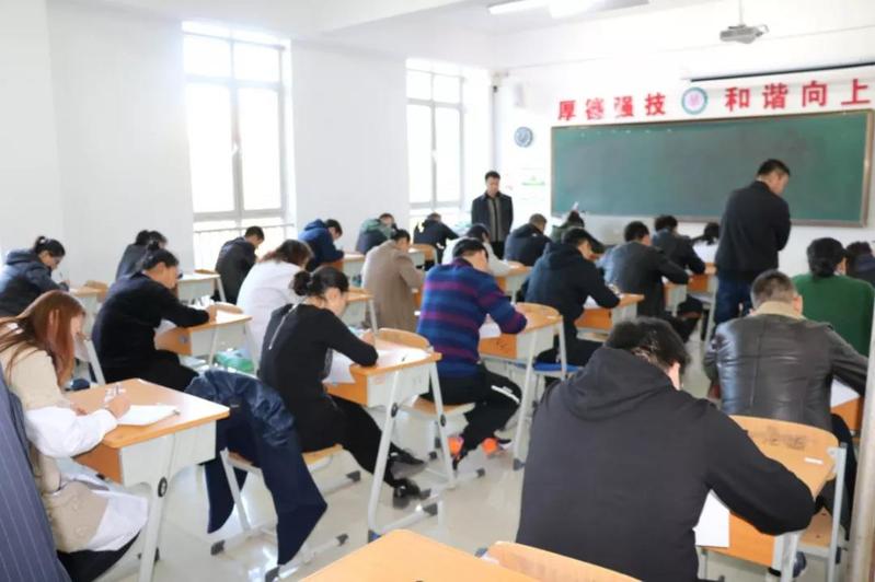 本次考试采取闭卷考试的形式进行,共分为七个考场,由各党支部书记及党外人士监考,党委领导班子成员进行巡考。