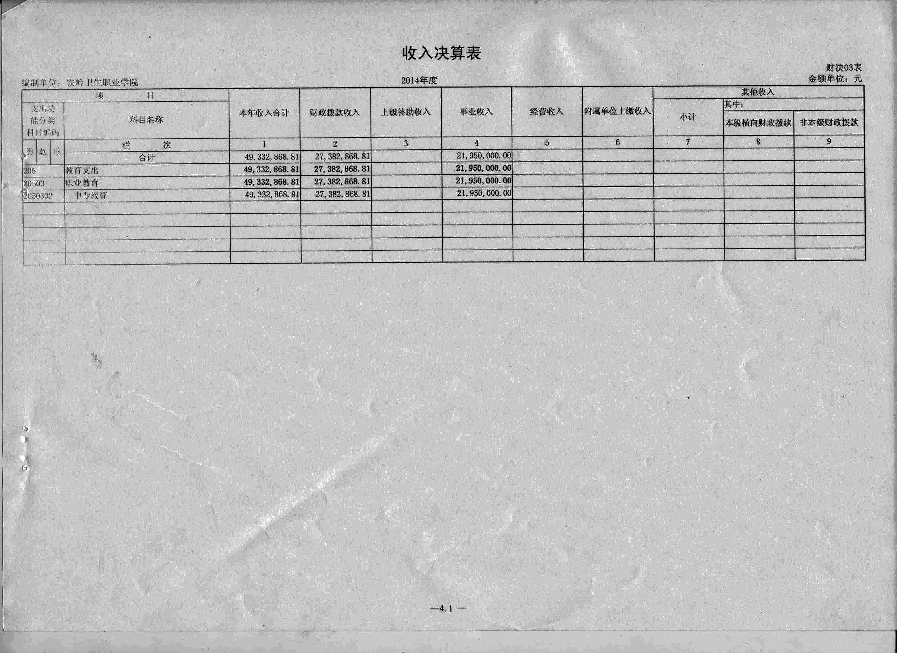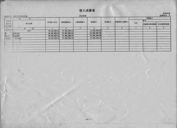 铁岭卫生职业学院2014年度收入支出决算表03