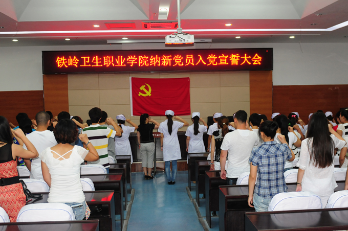入党宣誓仪式由党委工作部吴清主持。宣誓仪式在《国际歌》声中拉开序幕,党委工作部组织科科长刘双宣读了新发展的预备党员名单;医学检验技术系党支部书记徐宁带领宣誓;护理系11高职护理八班金子昀同学和宣传科科长马腾云先后代表新、老党员相继发言。最后,院党委副书记杨丽清做了重要讲话,她代表院党委向全体新党员提出了明确的要求,希望全体党员不要辜负党委的期望,发扬党的优良传统,牢记全心全意为人民服务的宗旨,在各自的学习和工作岗位上充分发挥党员的先锋模范作用,无愧于共产党员的光荣称号。
