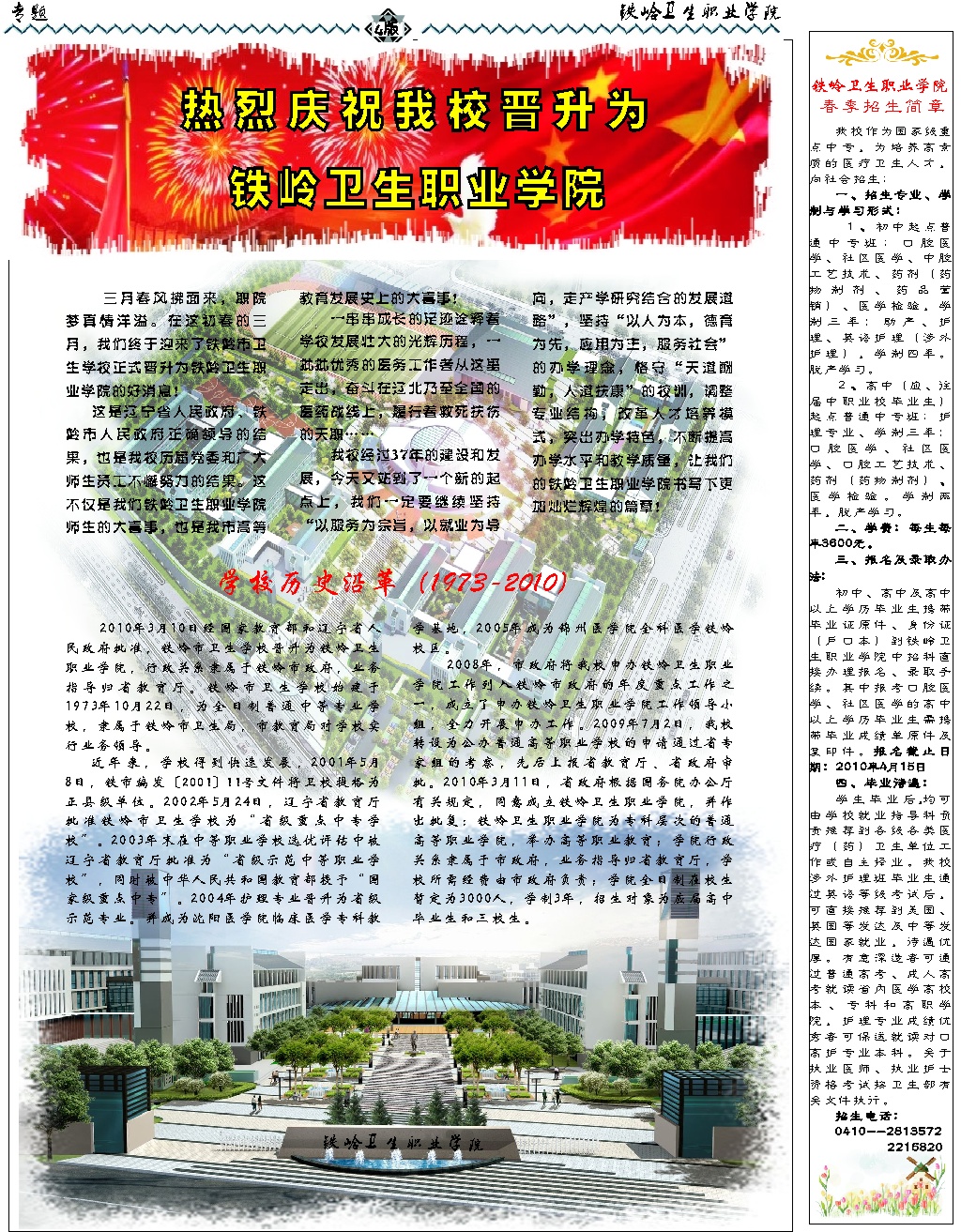铁岭卫生职业学院是辽宁省人民政府批准,国家教育部备案的全日制普通高等职业院校。