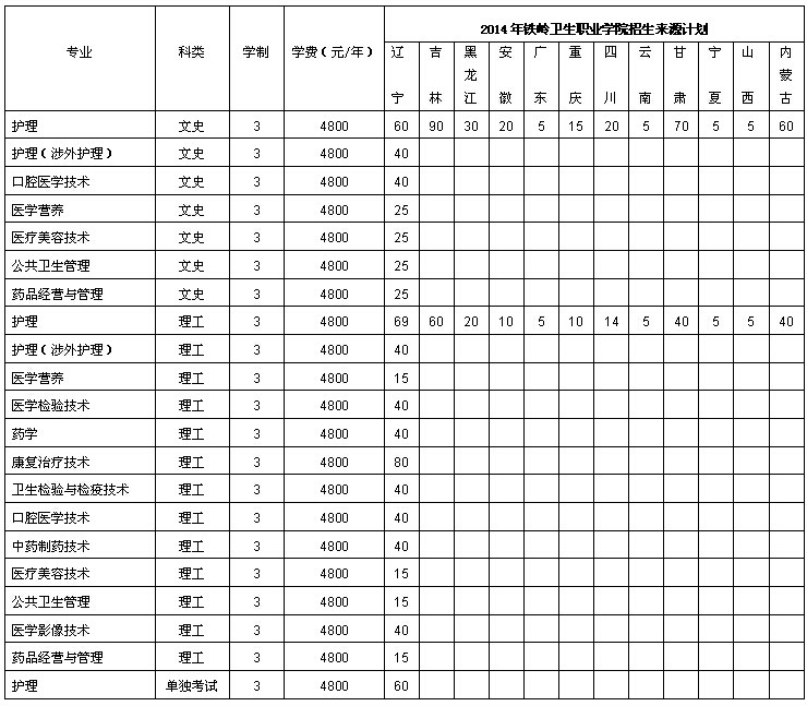 2014年铁岭卫生职业学院招生简章