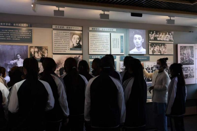 在讲解员的引导下,大家驻足于周恩来少年读书的斋房、展陈的文物史料前,重温伟人少年求学的历程,一场沉浸式的“大思政”实景课堂,让红色基因融入他们心里,让伟人“为中华之崛起而读书”的志向成为青年奋进的指引。