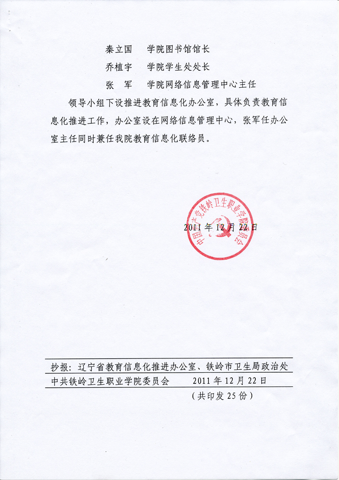 关于成立铁岭卫生职业学院教育信息化领导小组的通知