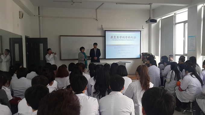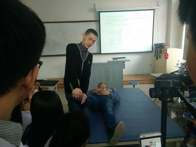 会上,杨玉辉主任对康复的专业性质、专业特点及发展方向进行讲座,对吉林大学中日联谊医院康复科的现状进行了介绍,同时对我院12级康复班王培基同学的实习表现予以高度评价,并表示欢迎我院更多的学生前往他们医院实习。随后杨玉辉主任和王丽华主任前往生产实习处和就业安置处,与各位处长就有关学生实习和就业问题进行座谈。同行的康复科PT长和康复医生与就关节松动技术、临床常见骨关节疾病的康复、脊椎脊髓损伤的评定与康复等专业技能进行了演示与指导。培训结束后我系师生和诸位专家进行了面对面交流,12级学生会主席王培基同学,与大家分享了在实习期间的心得体会!