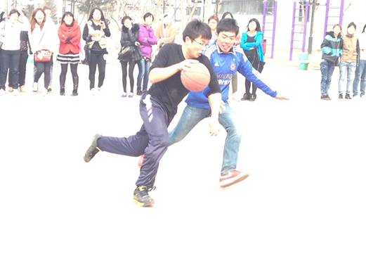 为丰富学生业余生活,3月26日我系在篮球场举行了一场篮球友谊赛。参赛选手主要来自11级和12级康复班,系书记孟繁明和辅导员尚光绯老师参加了此次活动。
