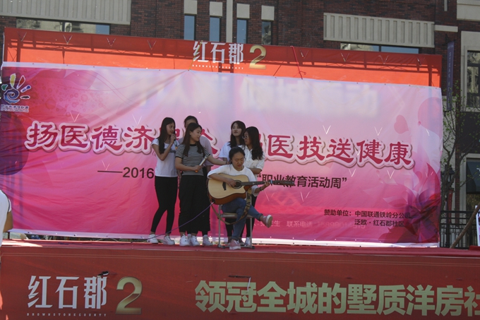 2016年5月13日下午4时30分,医学检验系、康复系学生与指导教师郑俊清、王金玲走进了铁岭凡河新区泛欧・红石郡社区,开展“职业教育活动周”扬医德济民众、强医技送健康活动。